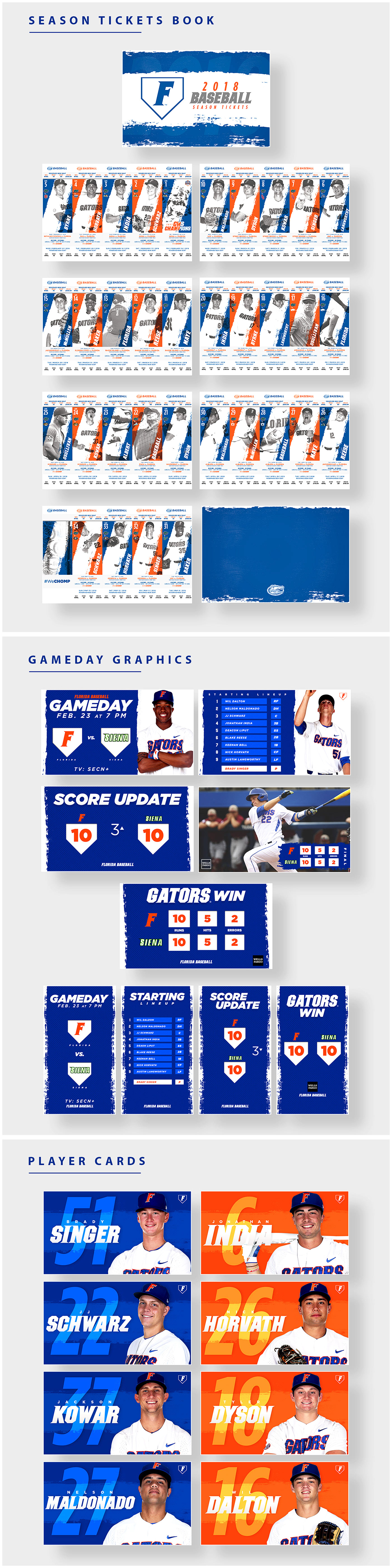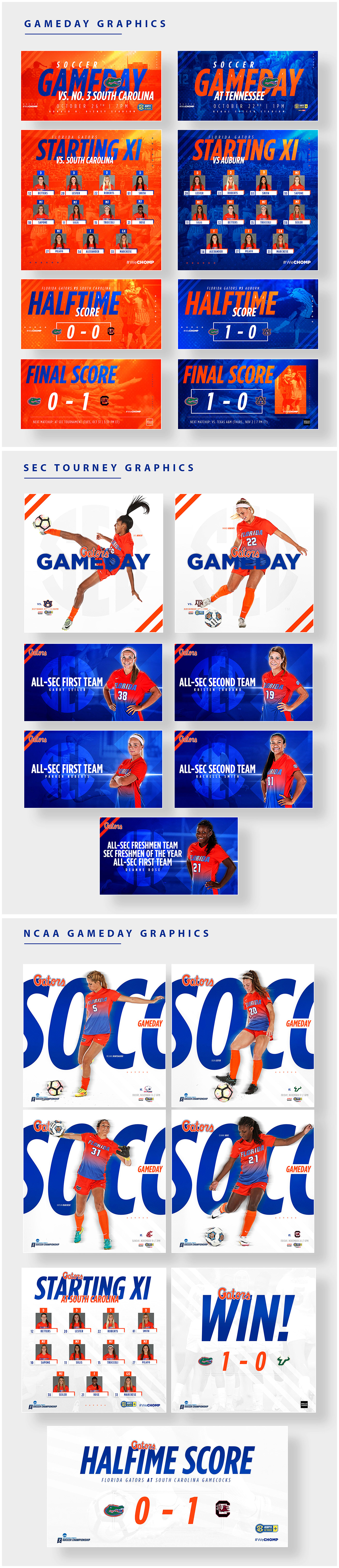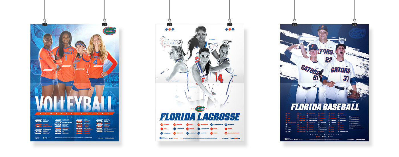 Graphics from Florida Gators Content 2017-2018 in multiple sports.