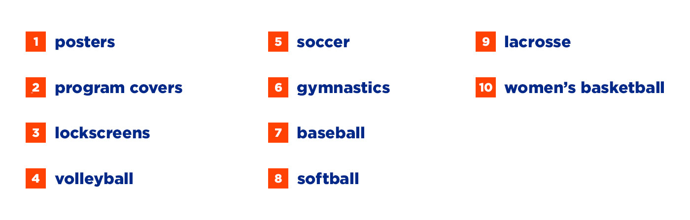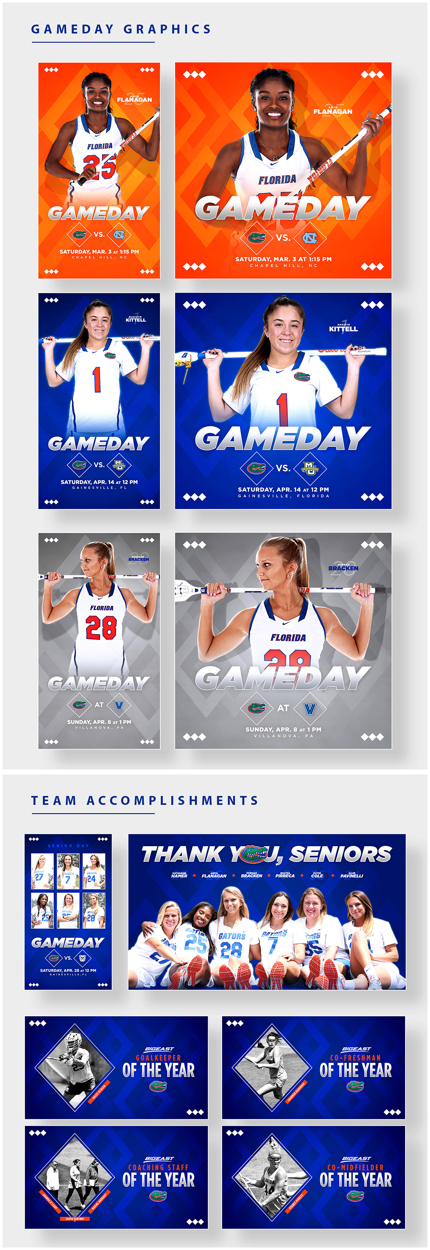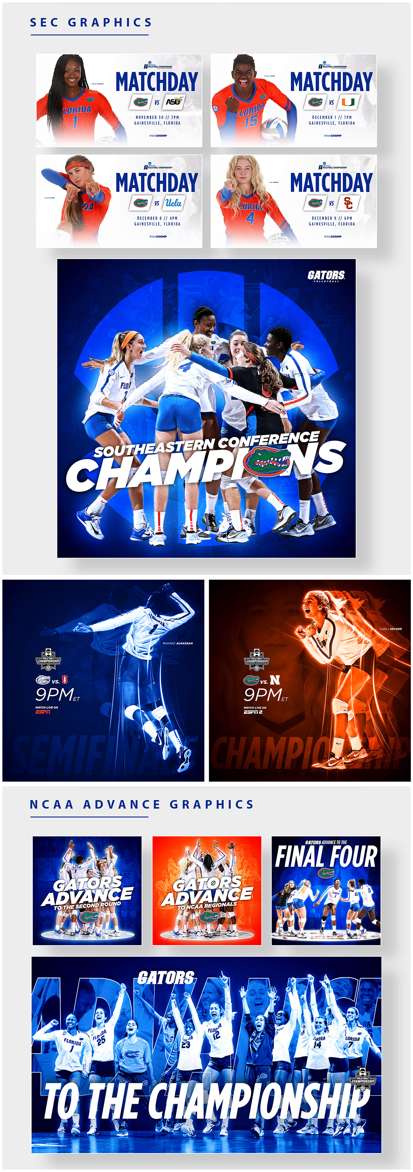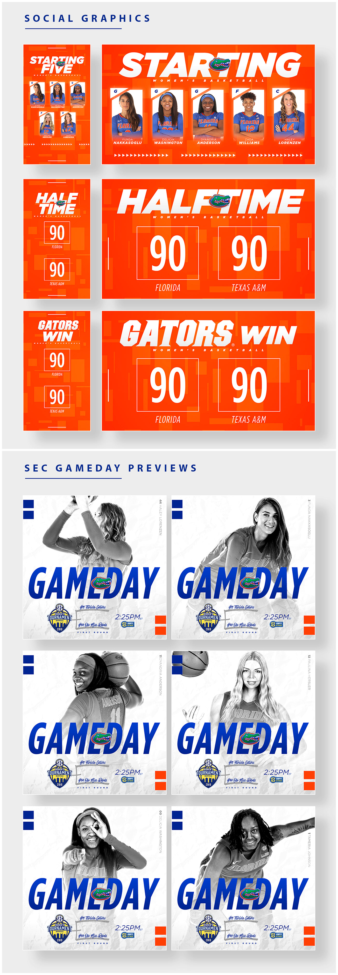 Graphics from Florida Gators Content 2017-2018 in multiple sports.